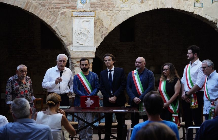 Ieri, giovedì 13 luglio, nella splendida cornice del chiostro di Palazzo Pretorio in Certaldo Alto, il Presidente della Regione Toscana Eugenio Giani ha consegnato al sindaco Giacomo Cucini il Pegaso d’Alabastro, il premio assegnato a chi si distingue nella promozione e nell’arricchimento della cultura toscana contemporanea nell'ambito della letteratura, dell'editoria, delle arti figurative, della musica o dello spettacolo.