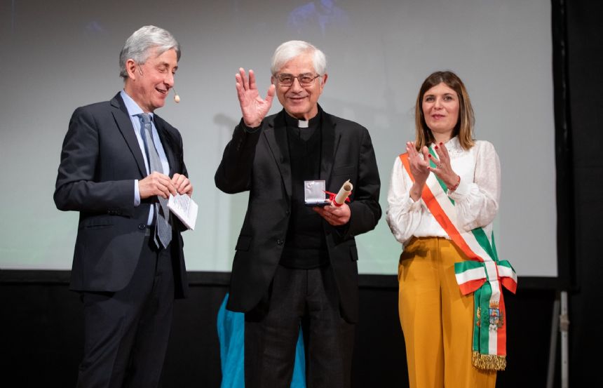 Un lungo applauso ha quindi accompagnato la consegna del riconoscimento al proposto della Collegiata e la conclusione della cerimonia con la consueta foto di rito.