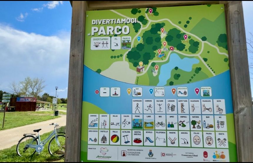 Un taglio del nastro che mettere al centro, ancora una volta, il tema dell'inclusività. Un valore prioritario nelle scelte compiute in questi anni dall'amministrazione comunale da oggi, martedì 2 Aprile 2024, più che mai visibile anche nel Parco di Serravalle. In occasione della Giornata Mondiale della Consapevolezza dell’Autismo, è stata infatti inaugurata la nuova segnaletica in Comunicazione Aumentativa Alternativa (CAA) dell'area verde più grande della città, a pochi passi dalla zona sportiva, presente sia in luoghi di passaggio del parco sia in prossimità delle aree gioco e dei giochi stessi: è il frutto del progetto “CAA nelle Aree Gioco” ideato dall'associazione Abbracciami Aps, realizzato da Fondazione CR Firenze nell'ambito del bando "Disabilità intellettive 2023" e cofinanziato al Comune di Empoli, partner istituzionale del progetto. Lo sviluppo della Comunicazione Aumentativa Alternativa è fra l'altro stato di recente oggetto da parte del Comune di Empoli di interventi che hanno visto al centro, grazie a risorse da finanziamenti PNRR, alcuni luoghi di cultura della città, come il Museo del Vetro, il Museo della Collegiata e la biblioteca comunale Renato Fucini, ma anche il centro storico della città dove sono presenti cartelli in CAA contenenti indicazioni per raggiungere la stessa biblioteca comunale. Ecco dunque che la nuova segnaletica presente nel Parco di Serravalle va a inserirsi in maniera efficace e preziosa in un percorso già avviato.