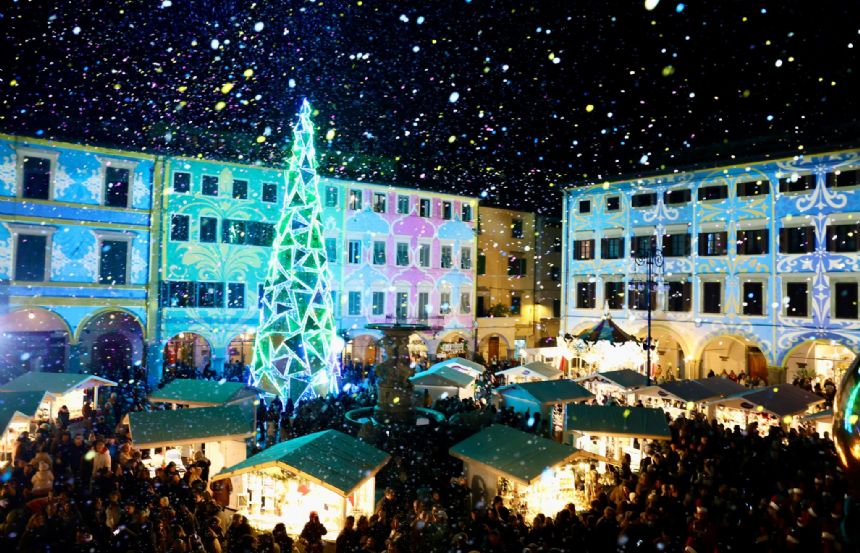 I visitatori potranno passeggiare tra le 70 baite bianche dei mercatini di Natale con prodotti gastronomici e artigianali tipici.