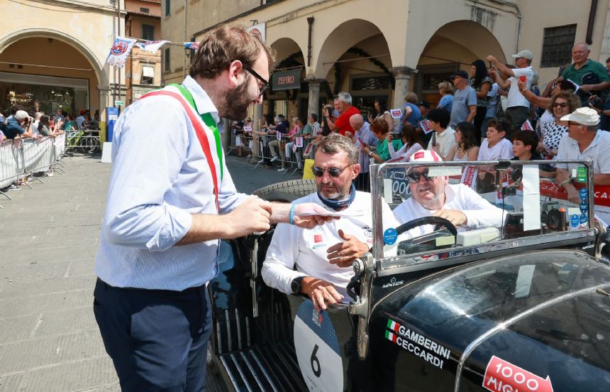 Il sindaco si è prestato per la timbratura dei primi equipaggi giunti in piazza, passaggio obbligatorio per la manifestazione, con i saluti ai tantissimi visitatori occorsi prima di ripartire.