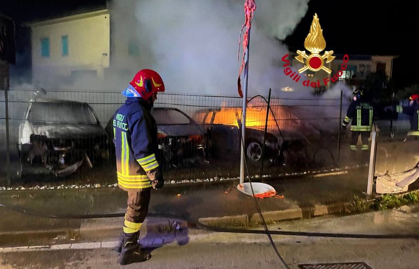 Inviate due squadre una da Empoli e una dal comando di Pisa con Castelfranco e un’autobotte, che giunte sul posto hanno effettuato lo spegnimento di 4 autovetture completamente avvolte dalle fiamme. Al termine delle operazioni di spegnimento, rimaneva la squadra del comando di Pisa per la bonifica e gli atti di rito.