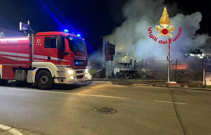 I Vigili del fuoco del comando di Firenze, distaccamento di Empoli, sono intervenuti alle ore 00:25 nel comune di Fucecchio in Via Fiorentina, per un incendio di autovetture situate nel parcheggio interno di un rivenditore di auto.