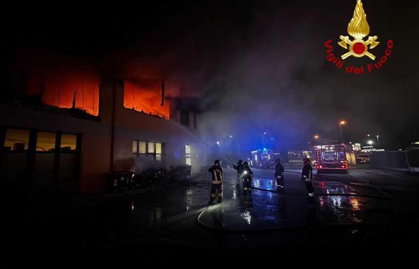 Incendio a San Miniato: Vigili del Fuoco in azione per spegnere le fiamme in un capannone commerciale