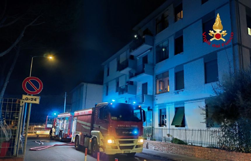 L’incendio, divampato per cause ancora da accertare, ha completamente invaso l’appartamento. I Vigili del fuoco, intervenuti anche con una piattaforma, hanno fatto ingresso nell’abitazione, dove fortunatamente non era presente nessuno.