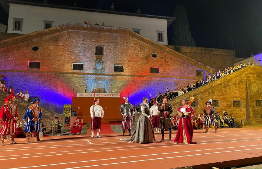 Nel rispetto della tradizione i giochi sono stati preceduti dal corteo storico, con la corte medicea, le dame e i cavalieri, i musici, gli sbandieratori e le squadre.