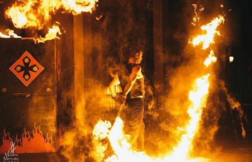 Dopo la firma, i cortei percorreranno nuovamente le vie del centro cittadino fino in Piazza Gramsci dove è prevista di fronte al Teatro del Popolo un’esibizione degli sbandieratori. Sul lato opposto della Piazza (tratto via Masini-Via Piave), intorno alle 18.00, ci sarà quindi il “grande spettacolo di fuoco” di Lux Arcana: uno spettacolo d'azione con musica epica, fuoco, danza aerea, ginnastica acrobatica e molto altro con effetti speciali e pirotecnici.