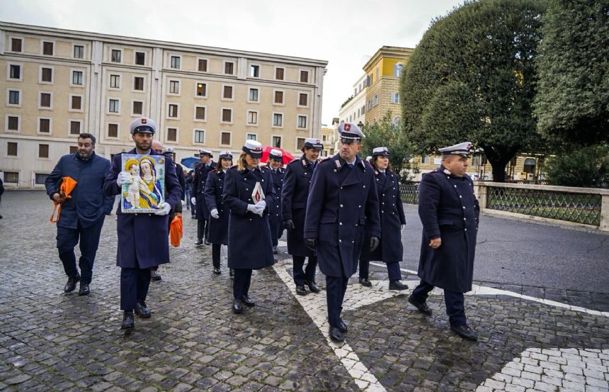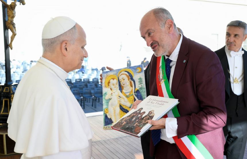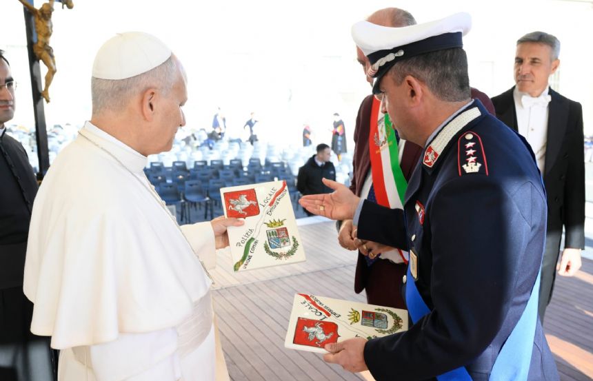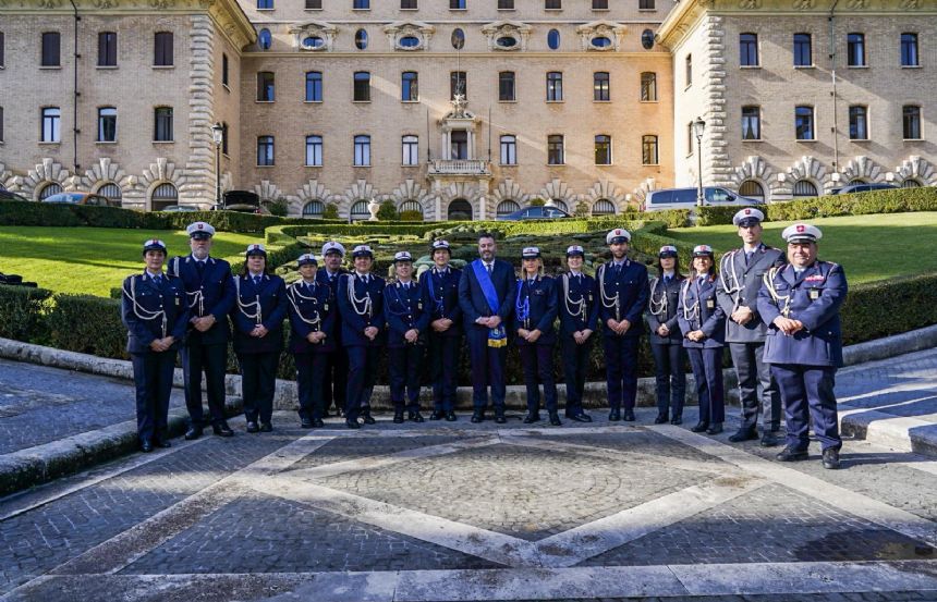 Papa Leone XIV facendo uno strappo al protocollo ha apposto la sua firma sul crest della Polizia Locale.