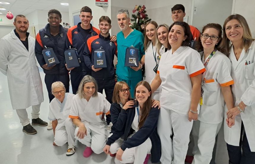 Una mattina diversa, fatta di sorrisi e di maglie azzurre, ha animato la Pediatria - e non solo - dell’ospedale San Giuseppe di Empoli. Una rappresentanza dell’Empoli FC 1920 ha fatto visita oggi ai piccoli ricoverati portando doni semplici ma molto attesi: cappellini di lana per bambine e bambini e piccoli panettoni da portare a casa per le feste. Per il reparto anche una maglia ufficiale dell’Empoli, consegnata incorniciata come segno di vicinanza e riconoscenza.