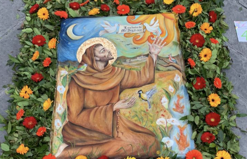 Grande fermento a Cerreto Guidi in occasione del Corpus Domini decorato con la grande abilità degli infioratori della Pro Loco cittadina e da pittori, volontari delle associazioni, bambini e famiglie, tutti uniti con l'ispirazione del poverello di Assisi e del suo straordinario Cantico delle Creature.