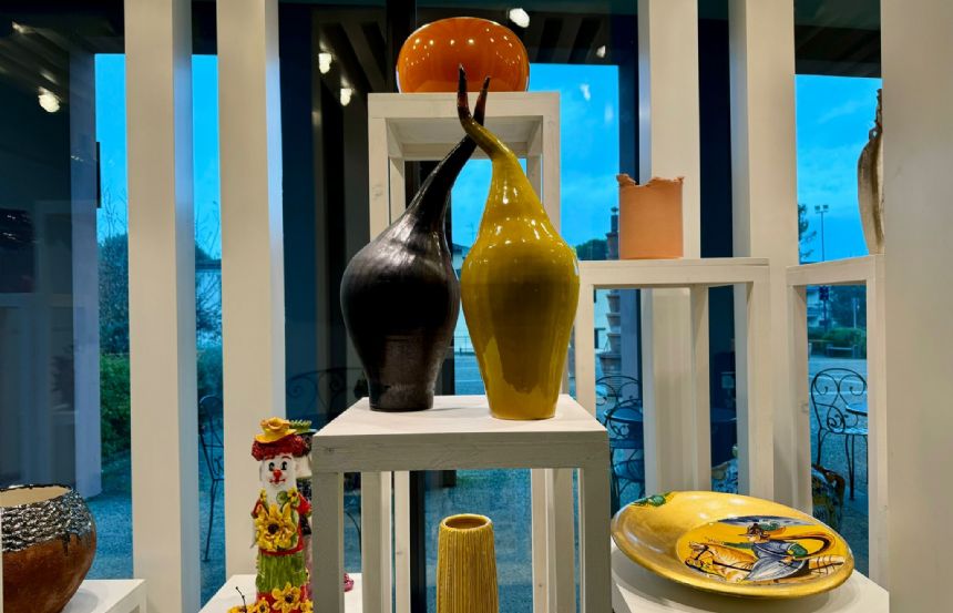 Un restyling, realizzato in poco più di un mese, che non lascia assolutamente indifferenti: è creato dall’impatto dato dalle mattonelle applicate sui due banconi realizzate da tutti gli artisti e artigiani ceramisti legati all’associazione Strada della Ceramica e alla presenza delle bellissime opere esposte nella parte destra della hall, disposte secondo ordine cromatico. Una fruizione immediata: “chi entra in questo luogo percepisce subito di trovarsi all’interno di un museo della ceramica”, spiega il sindaco.
