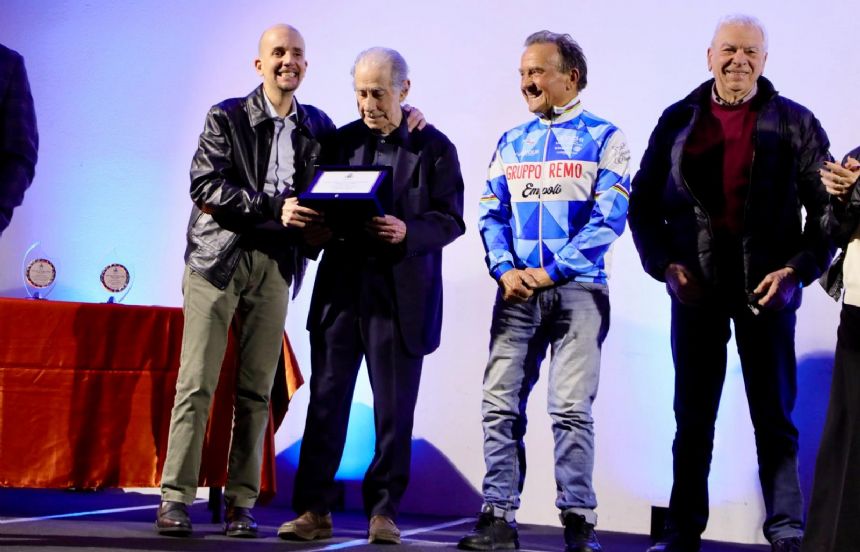 Nella terza sezione, dedicata all’atleta che ha conseguito il miglior risultato a livello agonistico, applausi e premio per Fabio Del Medico (Veloclub), vincitore del titolo italiano nella prova di Keirin, sul palco con il presidente del Veloclub, Alberto Mazzoni. A consegnare il premio Claudio Marchetti, in qualità di fiduciario Coni, per poi proseguire con la consegna della terza menzione speciale: destinatario, il Gruppo Remo, gruppo amatoriale di ciclismo capitanato dal dottor Remo Borchi, già medico di tanti campioni di ciclismo e da sempre attivo nella lotta al doping. Appassionati e affiatati, i componenti, ogni fine settimana, si ritrovano per escursioni sulle loro immancabili biciclette da corsa. A loro il riconoscimento, consegnato dall’assessore allo Sport, Fabrizio Biuzzi che ha sottolineato: “Mi fa piacere premiare un gruppo, questo gruppo, dimostrazione vivente che lo sport non ha età e testimonianza del fatto che è bello vivere lo sport, insieme. Ci tengo a sottolineare poi l’impegno del dottor Borchi nello sport amatoriale, dopo una vita spesa nello sport agonistico di livello mondiale”.