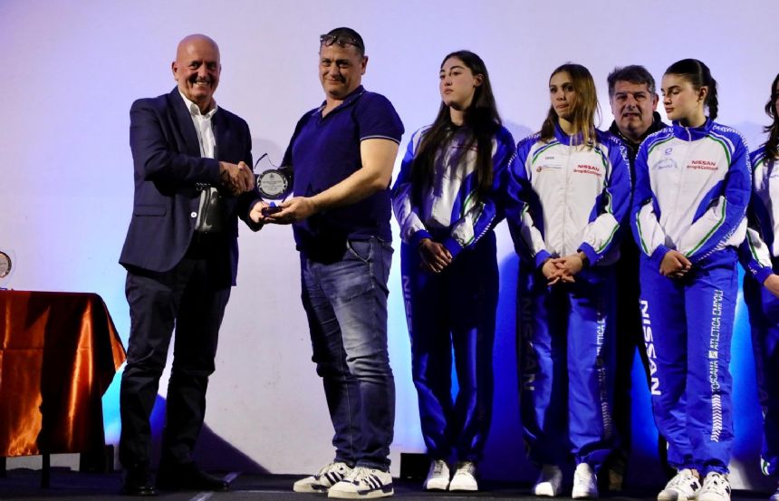 Spazio quindi alle premiazioni. Nella prima sezione, per i risultati migliori raggiunti a livello promozionale, è stata premiata la Uisp Empolese Valdelsa, rappresentata dalla presidente Arianna Poggi: l’associazione sportiva ha inaugurato nel settembre 2023, il primo campo di pickleball a Empoli. A consegnare il premio, la sindaca Barnini, che ha quindi lasciato il microfono all’assessore Biuzzi: a lui il compito di consegnare, insieme alla sindaca, la prima menzione speciale a Marcello Chiuchiolo, ex dipendente comunale adesso in pensione che per ben trentacinque anni si è occupato del manto erboso dello stadio ‘Castellani’. Con lui, a ritirare il riconoscimento, la nipotina Nora.