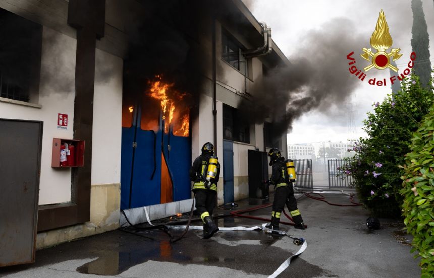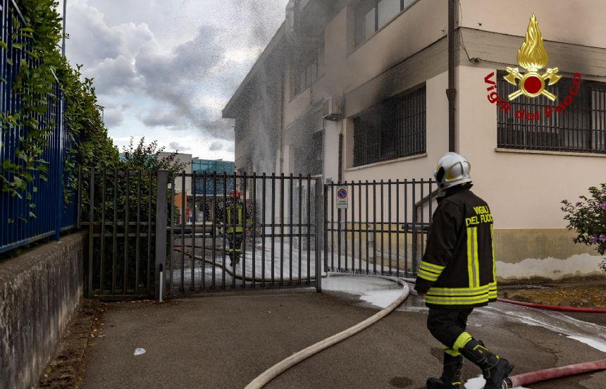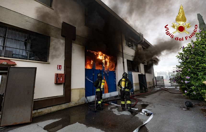 Sul posto i Vigili del fuoco, hanno divelto le porte per accedere all’interno dell’edificio per iniziare le operazioni di spegnimento dell’incendio utilizzando anche liquido schiumogeno. Sul posto intervenute ulteriori squadre, che hanno fatto accesso da altri portelloni per attaccare l’incendio da più punti dell’edificio. Questo ha permesso di contenere l’incendio evitando che si propagasse al piano superiore e ad altre zone.
