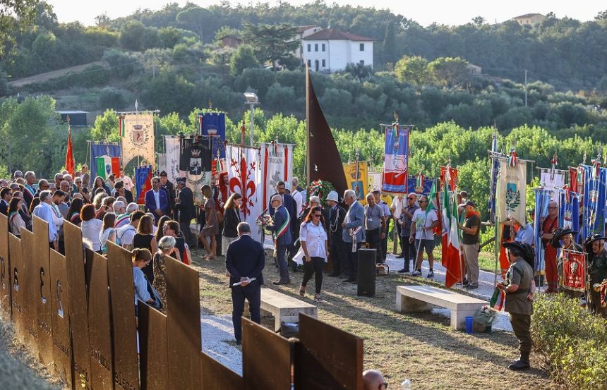 Una grande partecipazione popolare e istituzionale ha caratterizzato ieri la commemorazione per il 79° anniversario dell'Eccidio del Padule di Fucecchio, la terribile strage nazista del 23 agosto 1944, quando l'esercito tedesco in ritirata pianificò a realizzò il massacro di 174 civili inermi, in gran parte donne, bambini e anziani, nel territorio compreso tra i comuni di Cerreto Guidi (FI), Fucecchio (FI), Larciano (PT), Monsummano Terme (PT) e Ponte Buggianese (PT). Una lunga scia di sangue, dalla vittima più giovane, la piccola Maria Malucchi di appena 4 mesi, alla più anziana, Carmela Arinci di 94 anni, una donna cieca fatta esplodere con una bomba a mano piazzata nella tasca della vestaglia. La barbarie che si abbatté all'alba di quel giorno nell'area palustre tra le province di Firenze e Pistoia è stata riportata alla memoria dallo spettacolo “Diciassette proiettili la trafissero nel petto”, ideato e diretto dalla regista Firenza Guidi e realizzato dagli attori della compagnia Elan Frantoio. La rappresentazione si è ispirata alle vicende della giovane Alessandra Settepassi: figlia di una famiglia fiorentina benestante, amava trascorrere le vacanze nella fattoria di famiglia in Padule. Venne uccisa, allora diciassettenne, dai nazisti con 17 colpi di arma da fuoco.