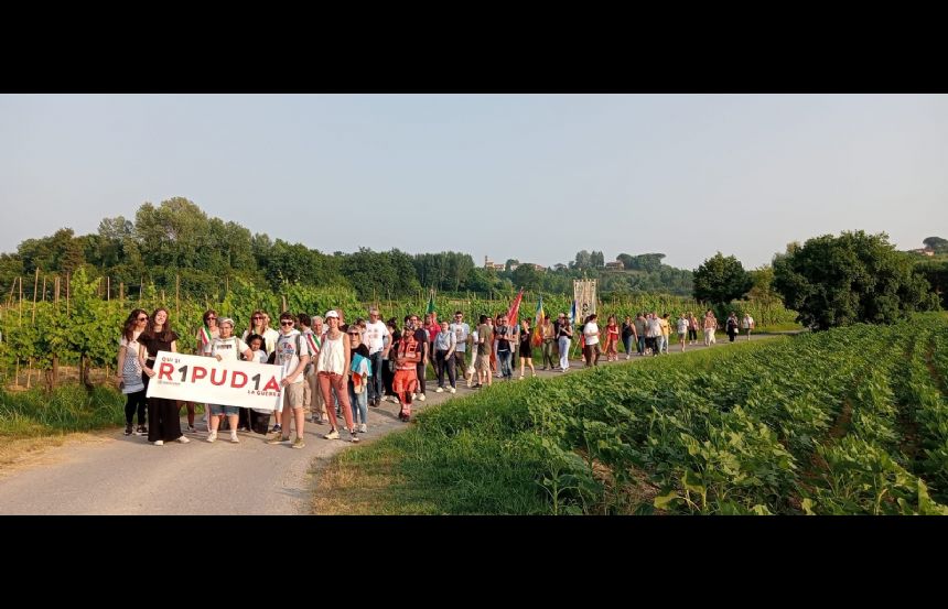 "Fermate questo massacro". È il grido che si è alzato ieri, venerdì 13 giugno, durante la Marcia della Resistenza, promossa dall'amministrazione comunale di Fucecchio in collaborazione con l’associazione #FucecchioèLibera e con la partecipazione di Emergency (Gruppo della Piana Fiorentina). Un cammino silenzioso che ha condotto i partecipanti dal Parco della Memoria al Casotto del Sordo, in località Massarella. La marcia, fortemente voluta dalla sindaca Emma Donnini, è nata con la volontà di aumentare nei cittadini la consapevolezza sulla strage di civili in atto a Gaza e, al contempo, raccogliere fondi da destinare ai volontari di Emergency, uno dei pochi baluardi ancora in funzione in Palestina per mantenere il diritto alla salute.