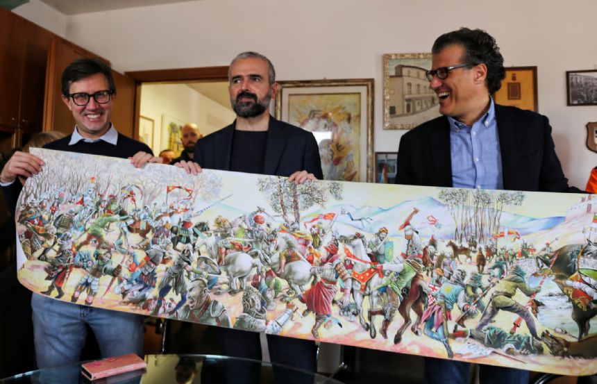 Al termine della visita, in Comune, al sindaco Dario Nardella è stato illustrato il progetto di arte contemporanea che vede la ricostruzione della Battaglia di Anghiari in un quadro lungo 12 metri, modulare e trasportabile, da parte dell'artista vinciano Nico Paladini. Si tratta di un progetto portato avanti dell'associazione MUD.