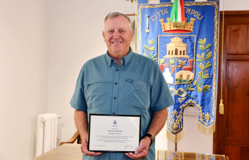 Dal Texas fino in Toscana per ripercorrere i mesi di guerra del '44, quando Empoli fu liberata. Il sindaco ha accolto Schuchart e la moglie Vivian Torres