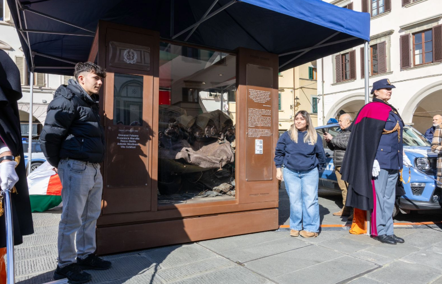 Grandi emozioni a Empoli con l'arrivo della teca con i resti dell'auto di scorta di Giovanni Falcone
