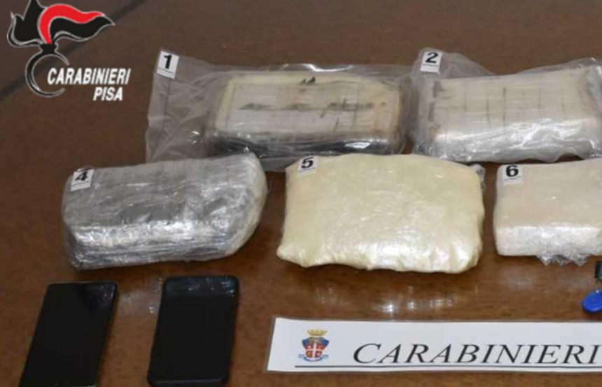 La Polizia di Stato sequestra hashish e cocaina durante un controllo a Empoli; perquisizione domiciliare rivela ulteriore sostanza stupefacente