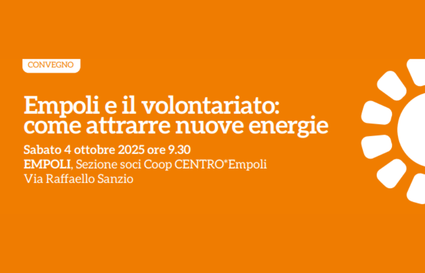 L'appuntamento ''Empoli e il volontariato: come attrarre nuove energie'' organizzato dalla delegazione Cesvot empolese è in programma sabato 4 ottobre alle 9.30 alla sezione soci Coop CentroEmpoli